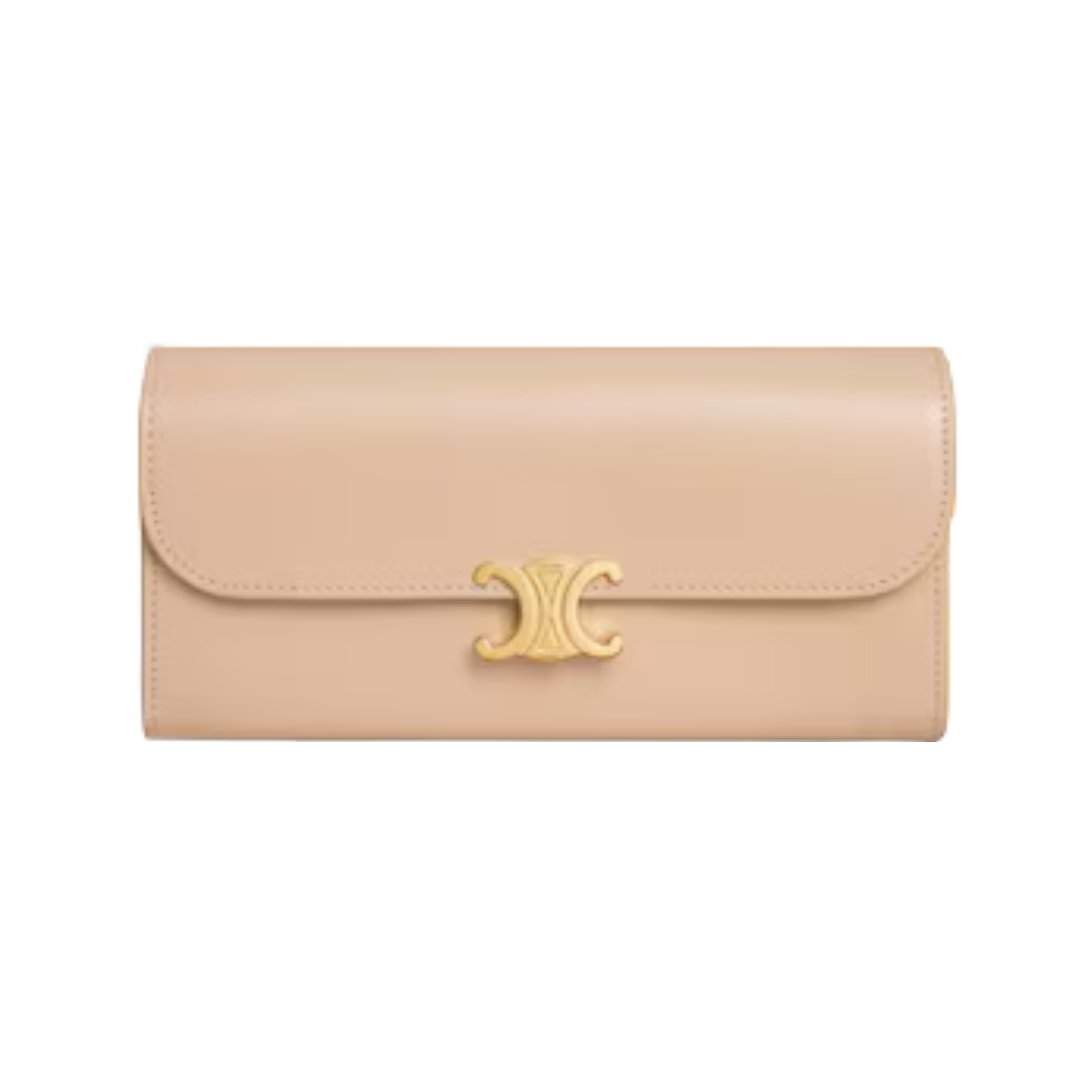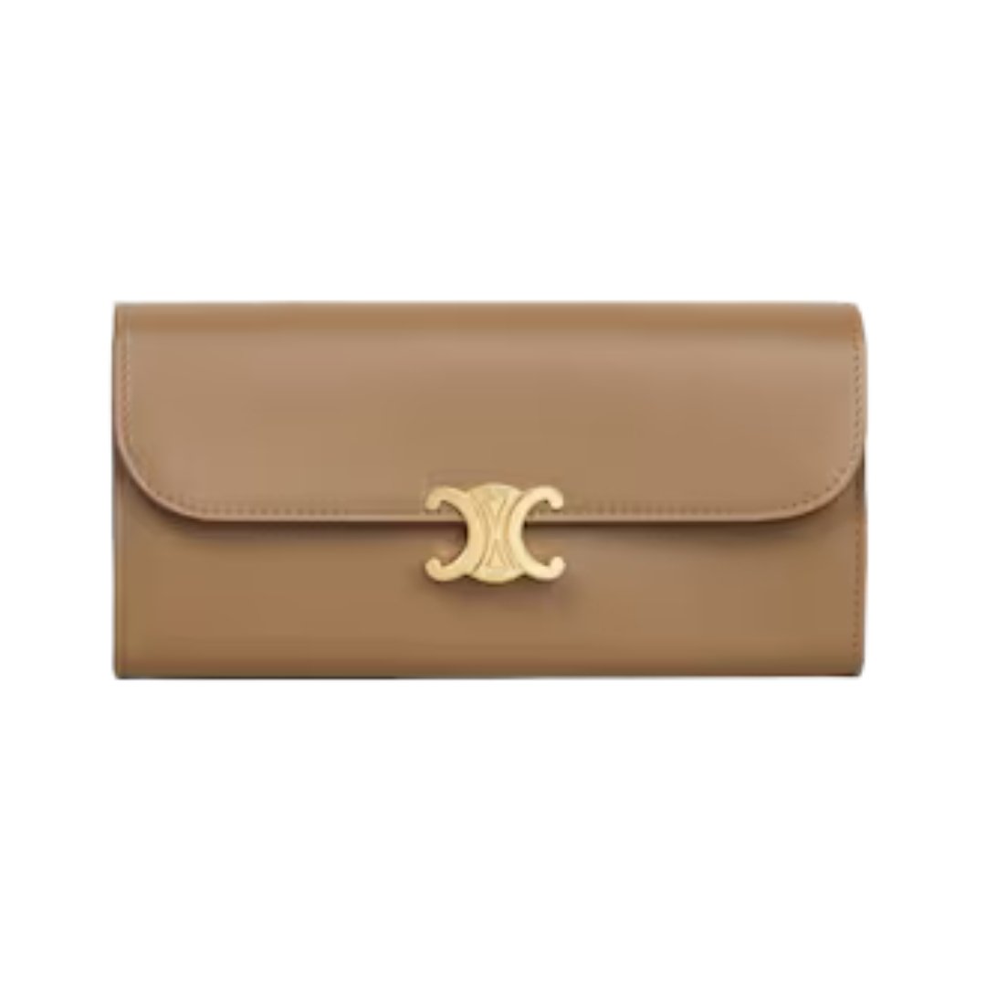 Portafoglio grande Celine Triomphe in pelle marrone chiaro 19 cm