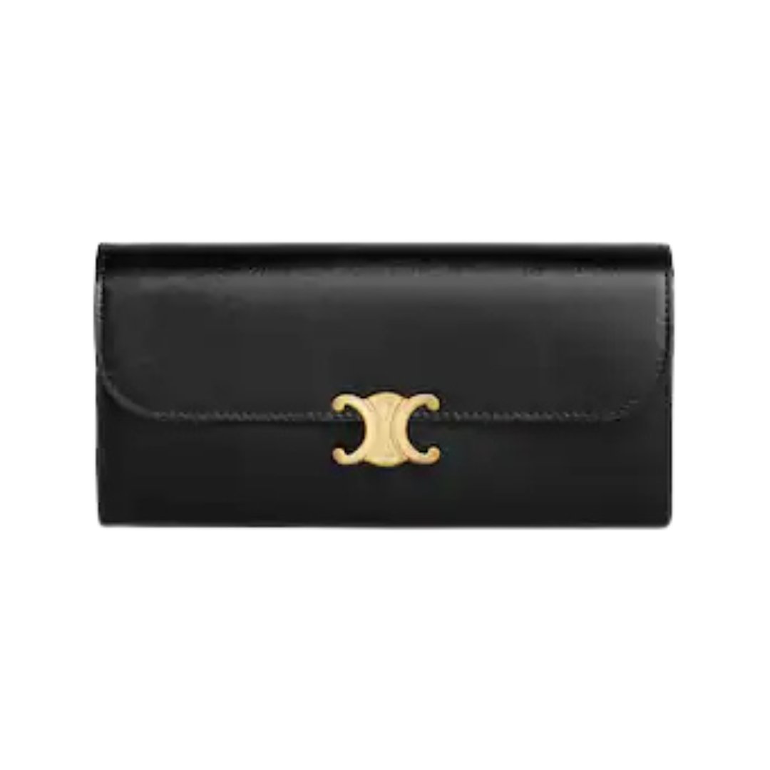 Portafoglio grande Celine Triomphe in pelle nera 19 cm