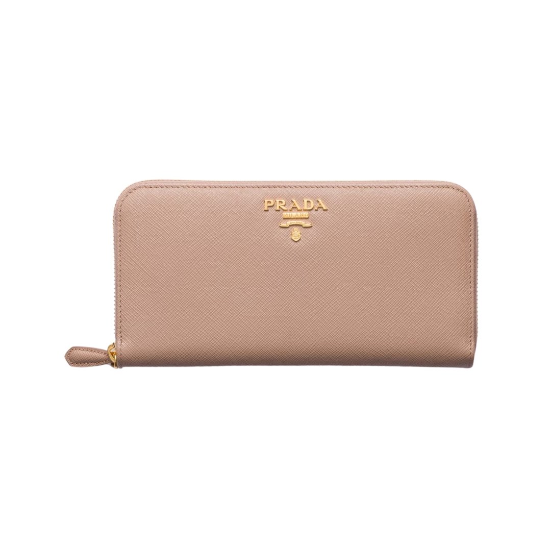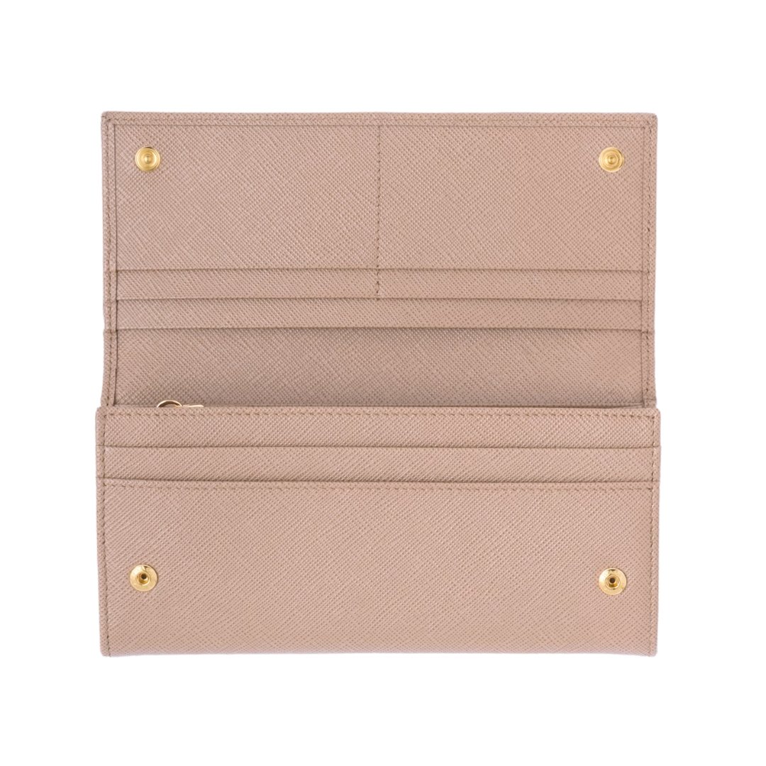 Portafoglio grande Prada in pelle Saffiano rosa cipria 9,5 cm