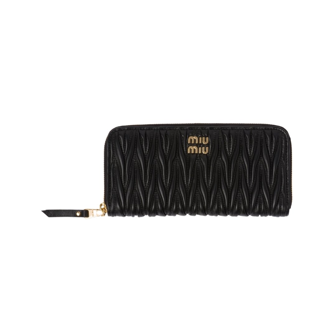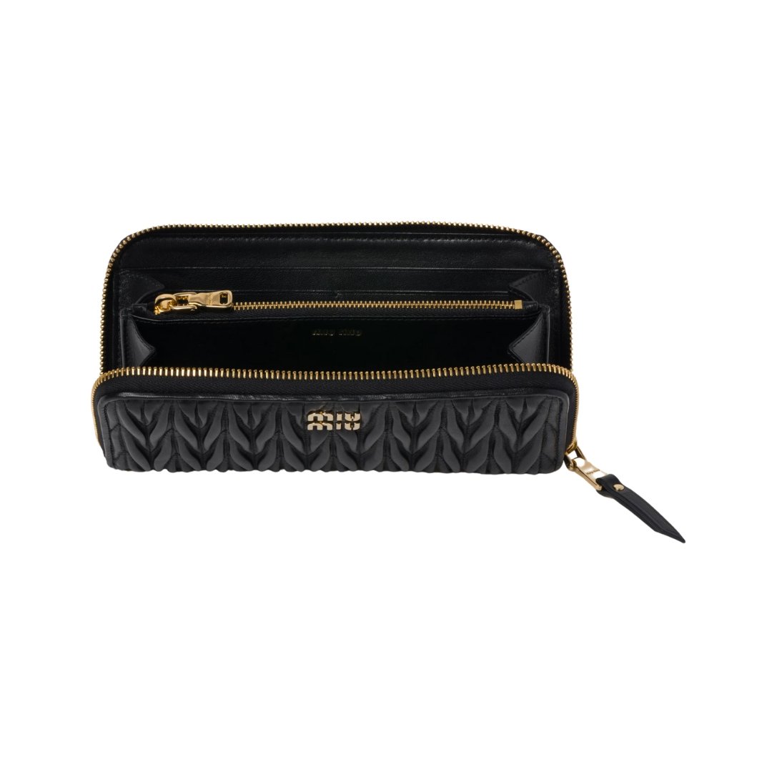 Portafoglio Miu Miu in pelle matelassรฉ nera 7,8 cm