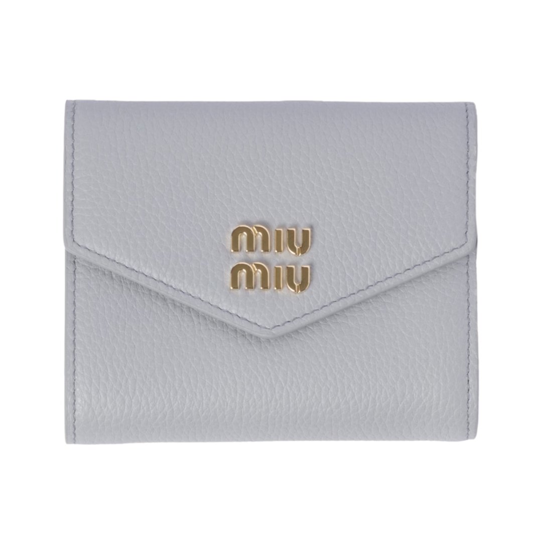 Portafoglio Miu Miu piccolo in pelle color fiordaliso 9 cm