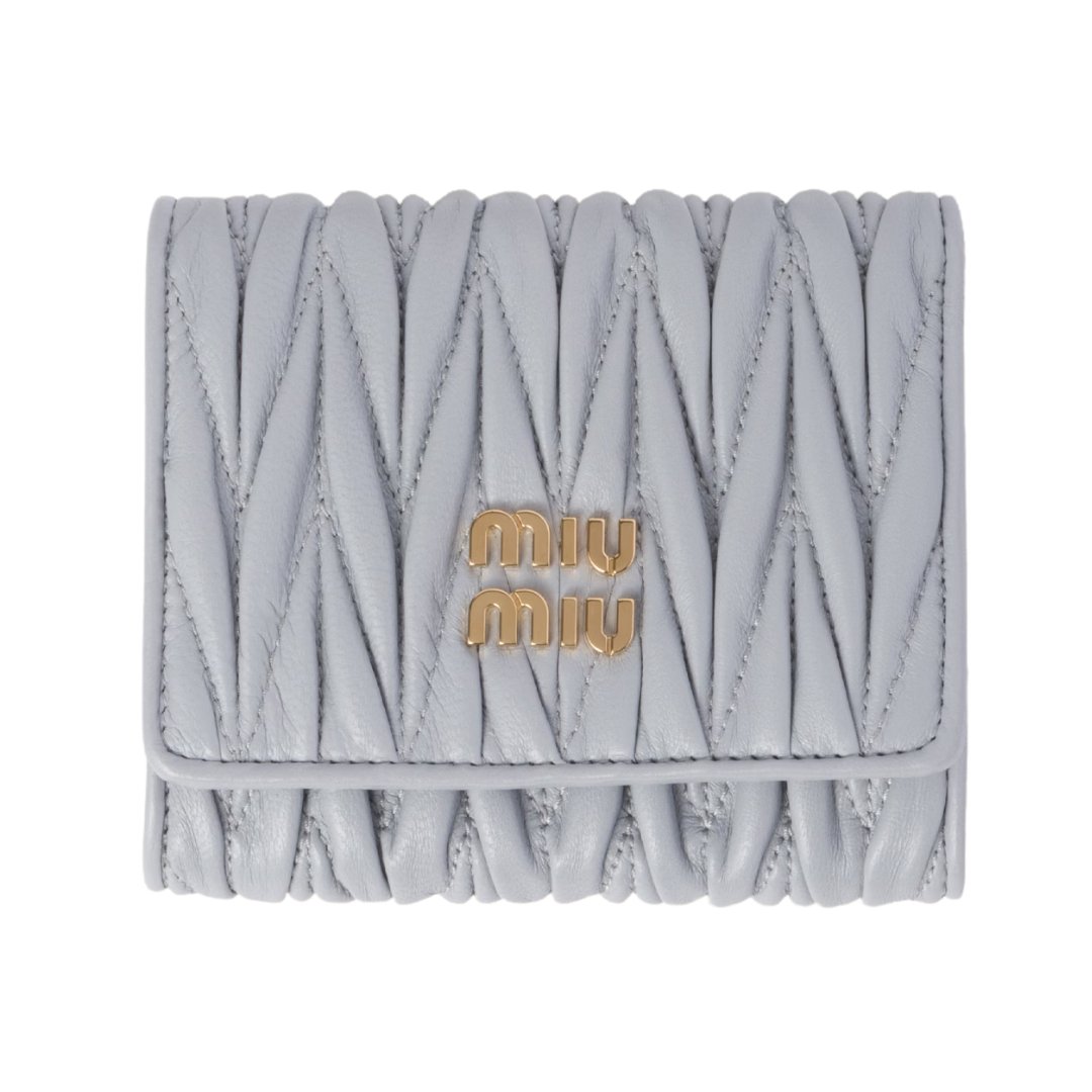Portacarte Miu Miu in pelle di nappa grigia con motivo matelassรฉ 8 cm