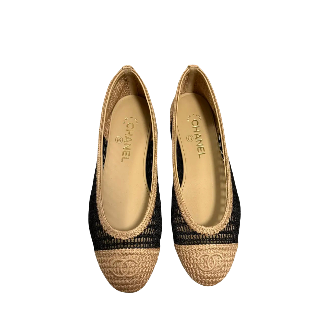 Dettagli:โ— Materiale: Rafia e pelleโ— Colore: Beige e neroโ— Chiusura: Slip-onโ— Logo: CC frontaleโ— Suola: Pelleโ— Interno: Foderatoโ— Parti metalliche:
